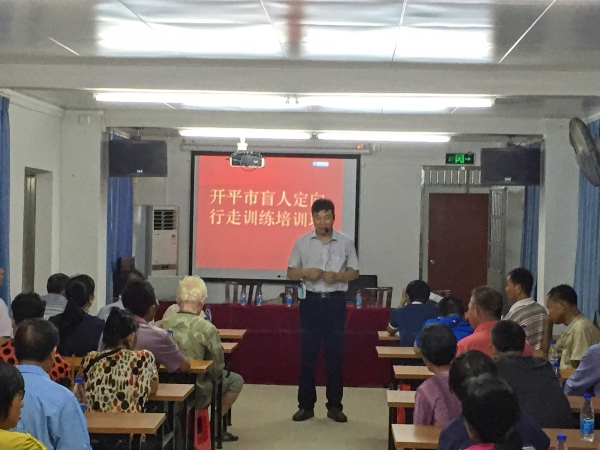 2015年7月21日开平市残联举办了盲人定向行走培训班,有50名视力残疾人参加了培训。