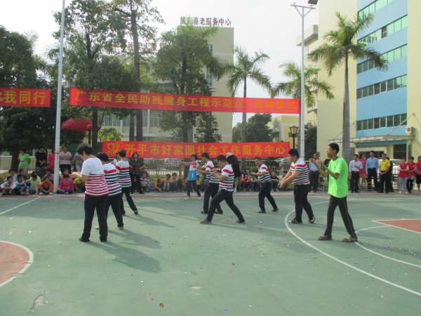 11月5日下午,在市残联室外篮球场举行了开平市全民助残健身工程示范点启动仪式,省残联宣文部部长陈土新出席仪式并致辞祝贺;另外,参加仪式的还有江门市残联副理事长梁培招、综合科有关负责人,开平市残联领导班子及有关工作人员,开平市体校校长冯沃森,长沙区、三埠区残联理事长及专职委员,东华医院残联分院院长吴任荣及医院社工,开平市特殊教育学校全体师生以及中山社区康园中心表演队等约90人。