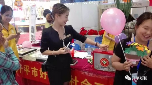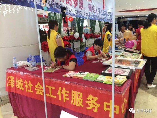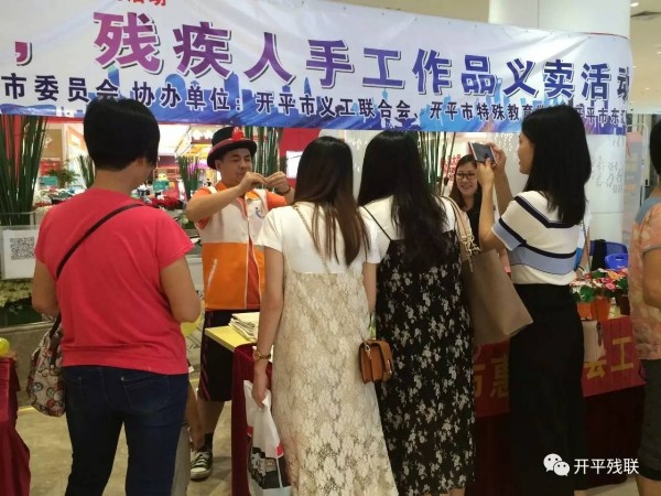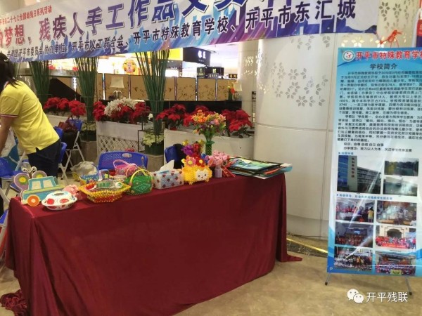 5月12日晚上,在开平市东汇城举办乐一场主题为“推进残疾预防,健康成就小康”的残疾人手工作品义卖活动。义卖现场摆放了由各社区康园中心和市特殊教育学校学生所制作的钻石画、七彩盆栽、缤纷帽、纽扣花、编织公仔等工艺精致的手工作品,吸引了众多市民参观选购。
