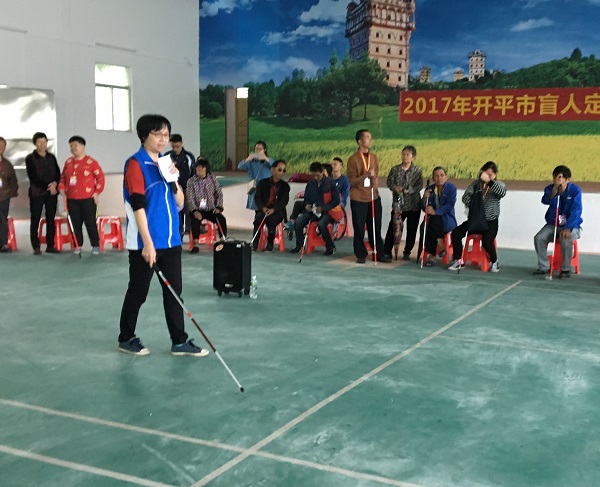 11月8日上午,开平市举行盲人定向行走训练,共有47个盲人参加了活动。