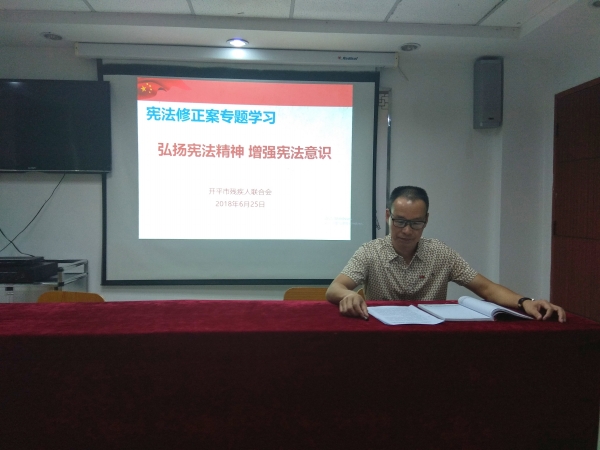 6月25日下午,开平市残联组织全体干部职工开展宪法修正案专题学习会。
