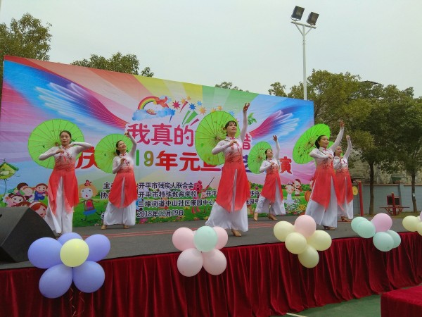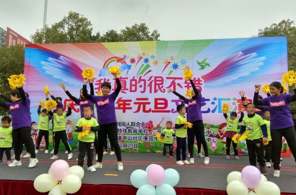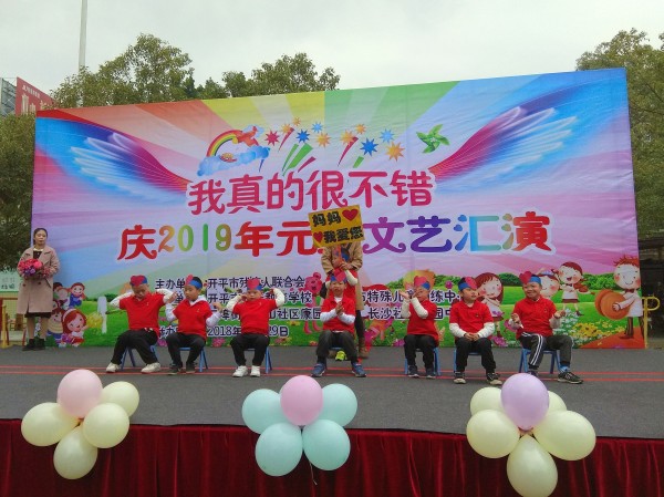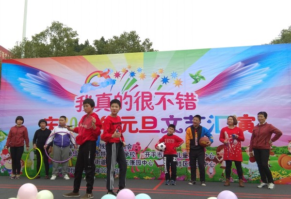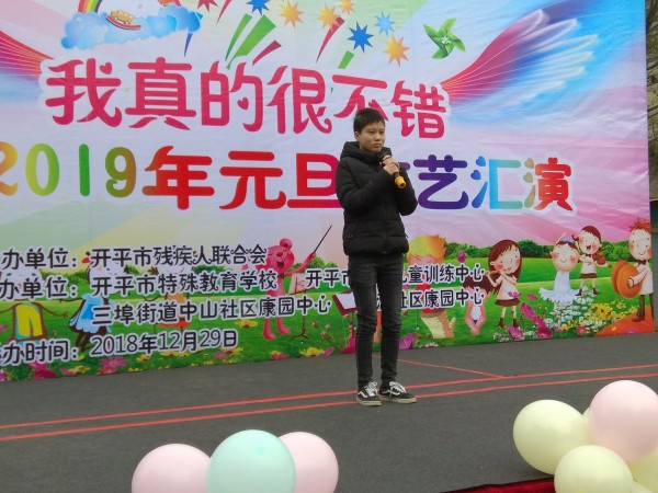 12月29日,开平市残联联合市特殊教育学校、市特殊儿童训练中心、三埠街道中山社区康园中心和长沙街道社区康园中心举办了一场元旦文艺汇演活动。
