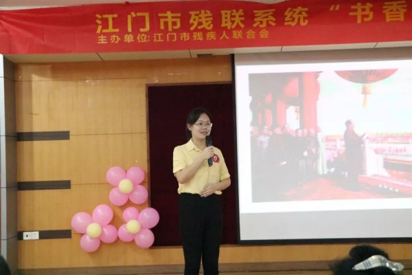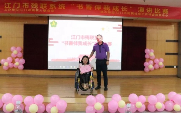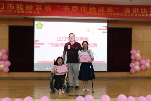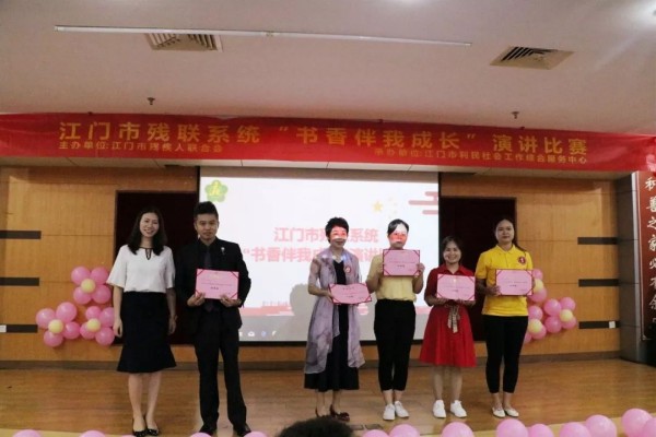 为庆祝中华人民共和国成立70周年,引导残疾人和残疾人工作者以生动的故事和典型的事例,讲述“爱读书爱生活”的亲身故事,讴歌伟大祖国发展,秉承“乐享阅读、传递能量”的活动理念, 7月12日下午,由江门市残联系统“书香伴我成长”演讲比赛决赛在江门市残疾人综合服务中心多功能厅举行,来自三区四市残联的11名选手经过激烈角逐,开平市选手罗燕娇和陈晓霞分别获得了二等奖和优秀奖。