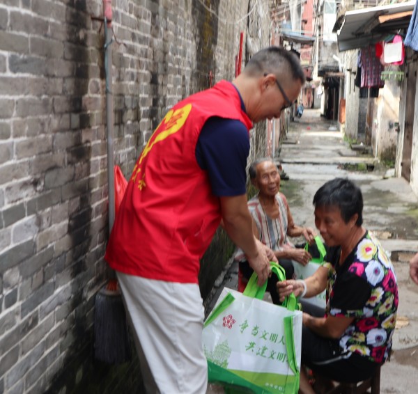 慰问活动结束后,市残联党员干部和东方红社区的干部一起在石龙村开展创文宣传活动,向居民、沿街商户发放创文宣传资料,并为他们讲解创建全国文明城市的意义,提升群众对创文工作的认识和支持。