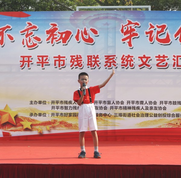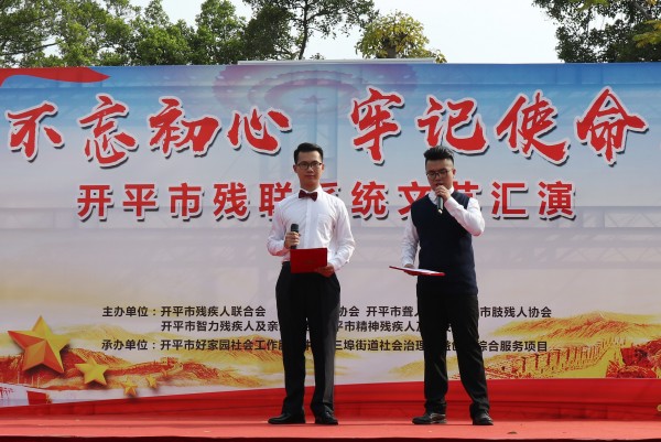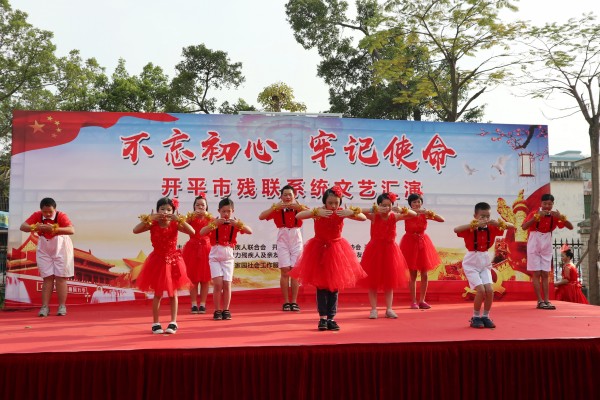 2019年10月30日下午,以“不忘初心、牢记使命”为主题的开平市残联系统文艺汇演在市残联篮球场顺利举行。市残联、市残疾人五大专门协会、市特殊教育学校及各相关残疾人服务机构的残疾人工作者和残疾人共200多人参加了活动。