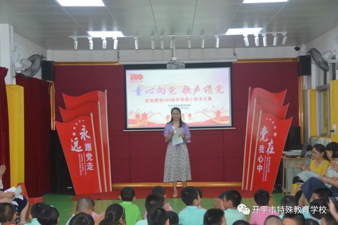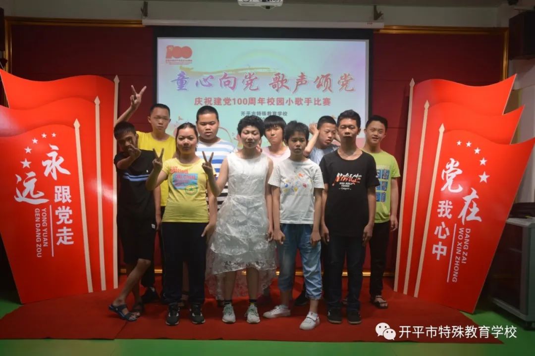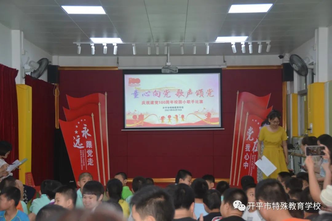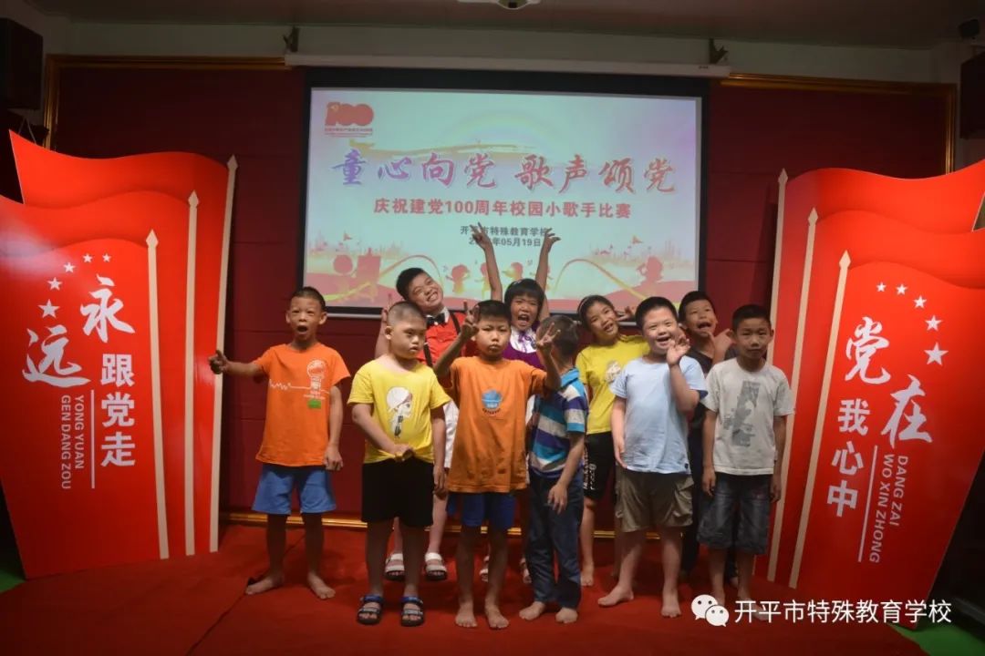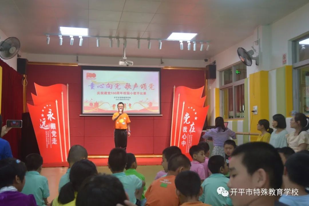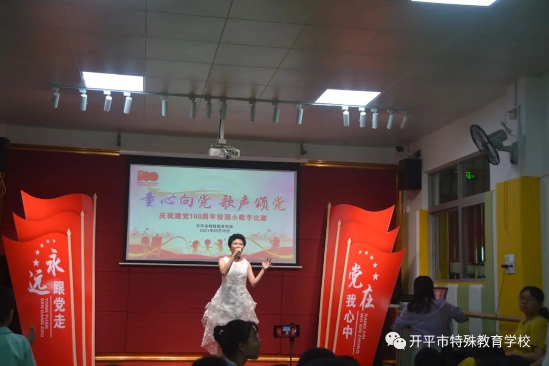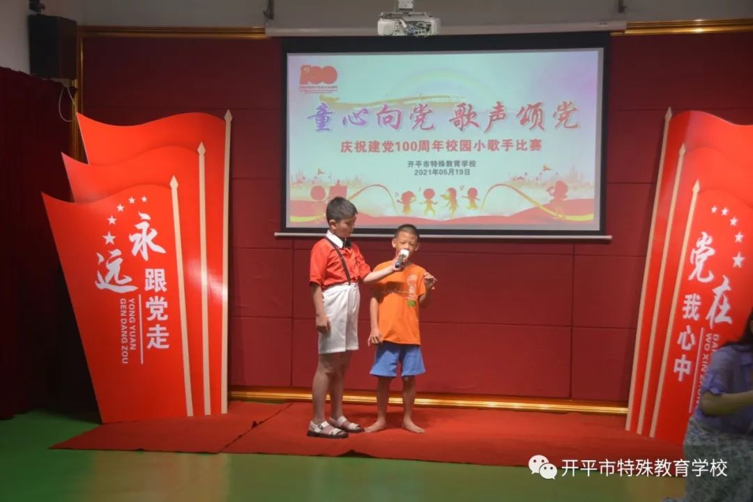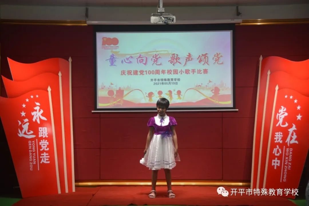 在中国共产党成立100周年来临之际,响应开平市教育局党史学习教育进校园的号召,培养学生热爱祖国的情怀和积极向上、朝气蓬勃的精神风貌。在2021年5月19日下午,“童心向党,歌声颂党”校园小歌手比赛在开平市特殊教育学校隆重举办。 百年征程波澜壮阔,百年初心历久弥坚 一首《我和我的祖国》节奏铿锵有力、音调振奋人心,引起了在场评委老师和观众的共鸣;《歌唱祖国》展示出铿锵豪迈、意气风发的爱国情怀,表达了对党和祖国的忠诚信仰和美好祝福;《我的中国心》让大家体验到浓烈的爱党爱国感情;《爱我中华》展现了学子们不忘初心,为实现中华民族伟大复兴的中国梦贡献青春力量的坚定信念。 小歌手们精彩的表演 胸怀千秋伟业,恰是百年风华。从1921年播下革命火种的小小红船,到领航复兴伟业的巍巍巨轮,在百年奋斗历程中,我们党领导人民取得了举世瞩目的辉煌成就,书写了波澜壮阔的历史画卷,留下了弥足珍贵的宝贵经验和精神财富。“没有共产党就没有新中国,他指引了人民解放的道路,他领导中国走向光明……” 回望来时的路,我们信念坚定;远眺前行的路,我们砥砺前行,“童心向党,歌声颂党”庆祝中国共产党建党百年红色歌曲小歌手比赛在全场师生们的掌声和欢呼声中圆满落下帷幕。 通过此次比赛,开平市特殊教育学校的学子们用优美嘹亮的歌声颂扬党的丰功伟绩,激发爱国情怀,祝愿祖国的明天更加美好!