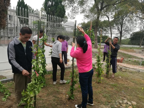 活动开始后,义工们组织到场的学员围坐一起包汤圆、煮汤圆,活动过程中项目组社工还准备了“冬至有奖问答”“歌唱环节”“浓情话汤圆”等互动环节。为了锻炼学员们的动手能力,在等待汤圆煮熟的过程中,社工带领学员们来到敬老院菜地亲手种植了项目组准备的百香果树苗,从松土、种树到浇水,每一个环节大家都非常的认真。上午十一点半大家回到活动室一起品尝自己制作的汤圆,并分享各种趣事,整个现场欢声笑语接连不断。