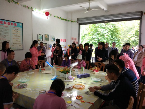 代表团首先参观了康园中心的工疗站,康园中心链接到市区的手工外发资源,且与开平市交通集团公司达成共识,定期送至康园中心点。其次参观心理咨询室,心理咨询室的整体布局简单但不单调,室内的有不同颜色的装饰物,给人一种温馨的感觉;体能训练室根据现有的康复器材配备相应的使用说明,并且有康复治疗师定期为有需要的学员提供康复训练。最后参观“心灵绿洲”农疗康复基地,康园中心计划将“农疗基地+革命教育+养老助残”有机融合于一体,探索“农疗诞生于康园,供养于社会,受益于大众”的社会企业综合体,增设市场化的“亲子农场”“互助农庄”等主题服务元素,残联代表团对“农疗基地”甚是肯定,同时也表示希望以后会有更多关于残疾人服务的交流经验。