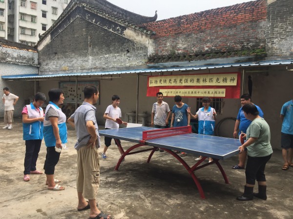 加油!加油!。。。。。。一阵阵的呐喊声此起彼伏,原来一场激烈有趣的特奥主题运动会正在上演。瞧!这边的乒乓球在学员手中跃雀地跳动着;那边的呼啦圈在学员的腰肢上尽情的旋转着;而在苍穹之下,一个个羽毛球正优雅的旋往对手的死角,好一派你来我往,热火朝天的景象!这头比赛刚刚结束,那头几位学员又开始了花式自行车竞技了,他们脸上挂着自信快乐的微笑,手中灵巧的扭动着车头,转眼间车子就稳稳地绕过一个又一个障碍,到达了终点......