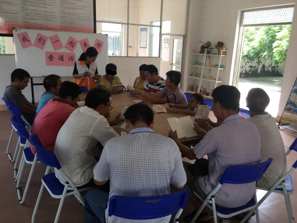 活动中,社工向带领学员们用普通话进行阅读,过程中还安排学员们进行角色扮演、对话练习。对于部分发音不标准的字句,社工细心予以纠正并领着他们进行多次练习。活动现场气氛十分活跃,学员们有遇到不会读的字都主动向社工请教,个别学员还主动担任社工的助教,主动教导其他学员。