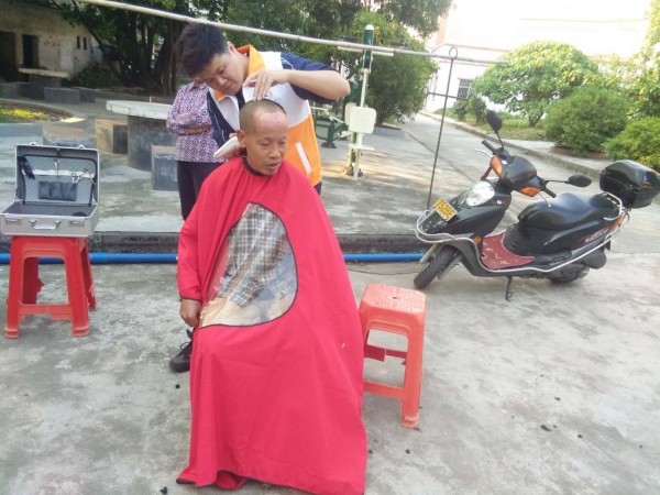 活动当天,理发志愿者早早就来到了月山镇社区康园中心的操场,准备好剪刀、电推、吹风机等用具,静候学员的到来。下午2点钟,学员陆续来到了操场,理发志愿者热情的迎接学员,仔细询问每一位学员的需求,给他们精心设计修剪各种发型。理发志愿者们精湛的技艺和优质的服务赢得学员的声声赞扬。