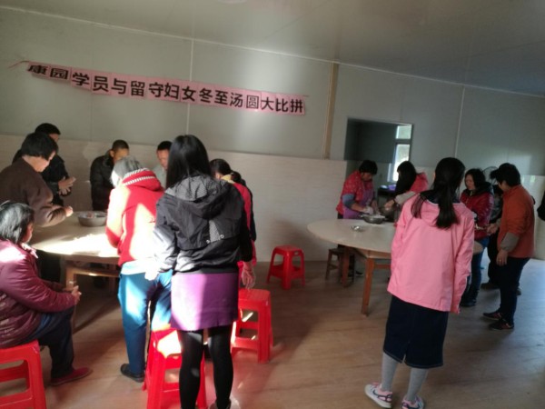 每年的12月21日或22日是我国的二十四节气之一——冬至,民间有“吃了汤圆大一岁”的说法。冬至吃汤圆,是我国的传统习俗,也是大过年的开端。为了使康园中心学员都能感受到冬至的气氛,感受到社区的温暖和幸福,2017年12月21日上午金鸡镇社区康园中心开展了一场康园学员与当地留守妇女冬至咸汤圆大比拼活动,其中,有13名学员和10名留守妇女参加了活动。