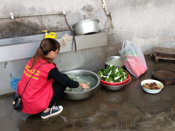 阳光义工正在洗菜