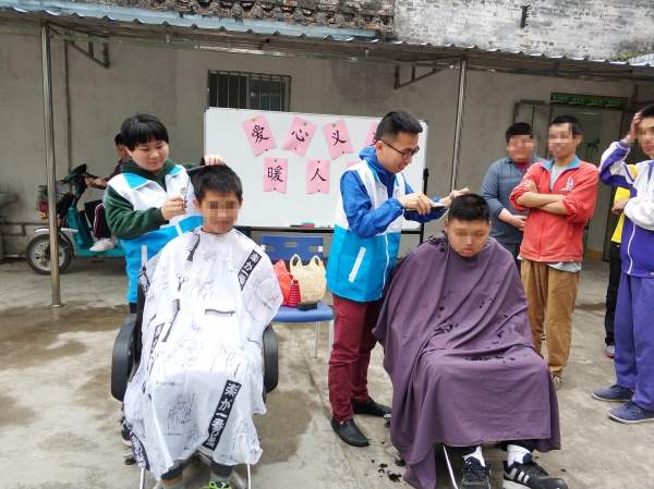 活动现场,义工服务队的师傅们手艺精湛,一缕缕的头发在义工师傅“擦擦”声中飘落下地,学员们的面貌变得精神抖擞。