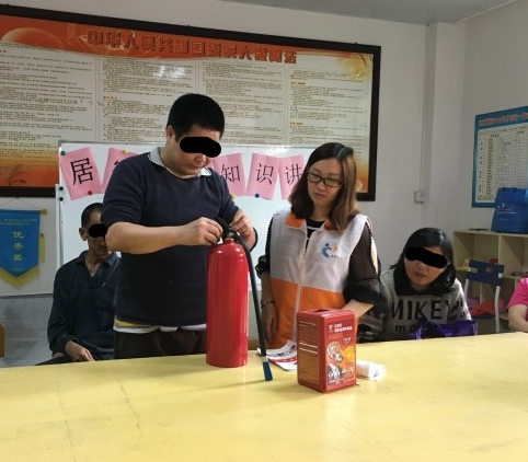 社工向学员讲解如何使用灭火器