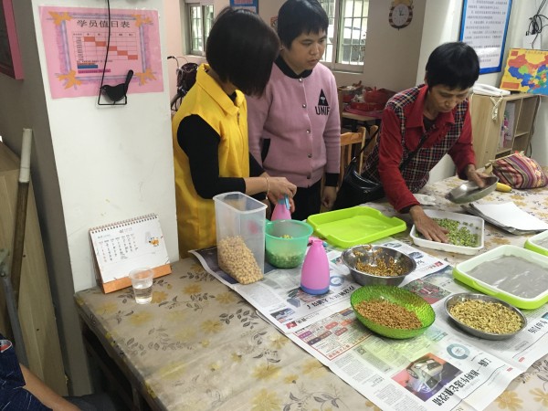 活动过程中,社工鼓励学员们上前选择喜欢的豆类进行尝试,义工在旁引导学员们种植正确步骤。与植物接触的感觉既熟悉又陌生,让久居城市的学员感叹不已,回忆起儿时的农村生活。