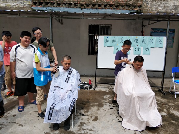 该活动一共帮助了中心24名残疾人学员免费修理头发。每个理发师们都认真细心地剪完一个接着另一个,学员也在社工的安排下有序耐心的等待。理发师志愿者在理发的过程中还热心与学员沟通交谈,询问他们想要剪怎样的头发,并且在剪发的过程中细心的安抚一些智力类的学员。热情细心的服务加上精湛的手艺,得到了残疾人学员的一致好评,剪完之后都说自己变得好漂亮,现场气氛相当活跃。学员们真诚的感谢及笑容也让来到的志愿者感受到了服务他人带来的精神回馈。