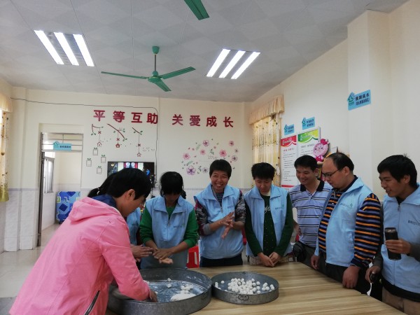 个体的力量是有限的,集体的力量是无限的。在此次冬至活动中,每位学员都发挥自己的优势,完成力所能及的工作。口才稍好的学员在工作人员的带领下一同前往市场购买活动物资,争取以更优惠的价格购买质量更新鲜的食物;生活技能稍丰富的学员在工作人员的带领下进行食材的准备;动手能力稍强的学员在工作人员的鼓励下一同进行汤圆的制作,最后得意洋洋地一起分享寓意“团团圆圆”的具有开平特色的“咸汤圆”。