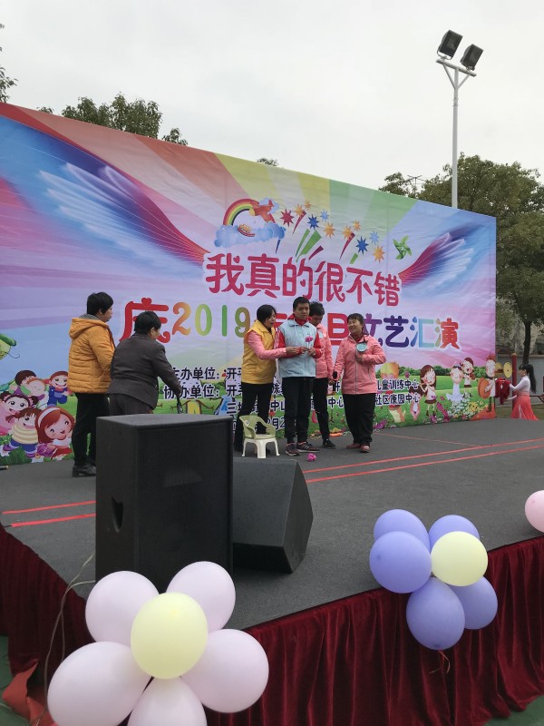 为丰富社区康园中心学员对“朋辈群体”的认知,了解身边友好的人在我们生活中的角色和意义,带领学员走向社会感受互动的氛围,2018年12月29日,长沙康园带领学员参与由开平市残疾人联合会主办的“我真的很不错”庆2019年元旦文艺汇演。长沙康园学员以“表演者”的身份参与其中,表演《让爱一起飞》小品,通过日常的排练以及最后的成果展示,长沙康园希望社会大众能和谐相处,或许我们身边有很多人平时不爱说话,不善于与人交往相处,但我们要关爱他、理解他和包容他,我们一定要互助互爱。
