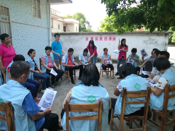 社工首先以“雨点变奏曲”的热身游戏,调动参与者的活动热情,接着主持社工讲述乘坐公交时的两种不同行为,一是不文明的行为,如不排队上车、对“老弱病残”者不让座、大声喧哗影响其他人、车内吸烟、不文明的举止等方面,另一个是文明的行为。在面对不文明行为的时候,我们应如何去做,学员们纷纷发表了自己的看法。