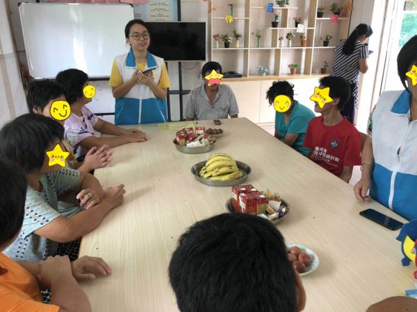 活动前,社工早已为学员们准备了香甜的水果和饼干糕点等,并精心布置好现场,学员们围坐在一起,在社工的带动下,彼此你一言我一语地互相聊天,畅所欲言,还有学员积极表演唱歌,现场其乐融融,热闹温馨。随后,社工引导学员们进行“击鼓传花”小游戏,让学员们在游戏中认识新学员,同时也加深彼此的了解;在“我们是一家人”互动游戏中,让学员们通过共同传递一个圆球,让大家感受团队间有效的配合、衔接以及自我控制能力,使大家懂得团结与合作的力量;以及在“轻功水上漂”游戏中,让学员们能从中培养良好的心态,遇到挫折不气馁、不退缩。